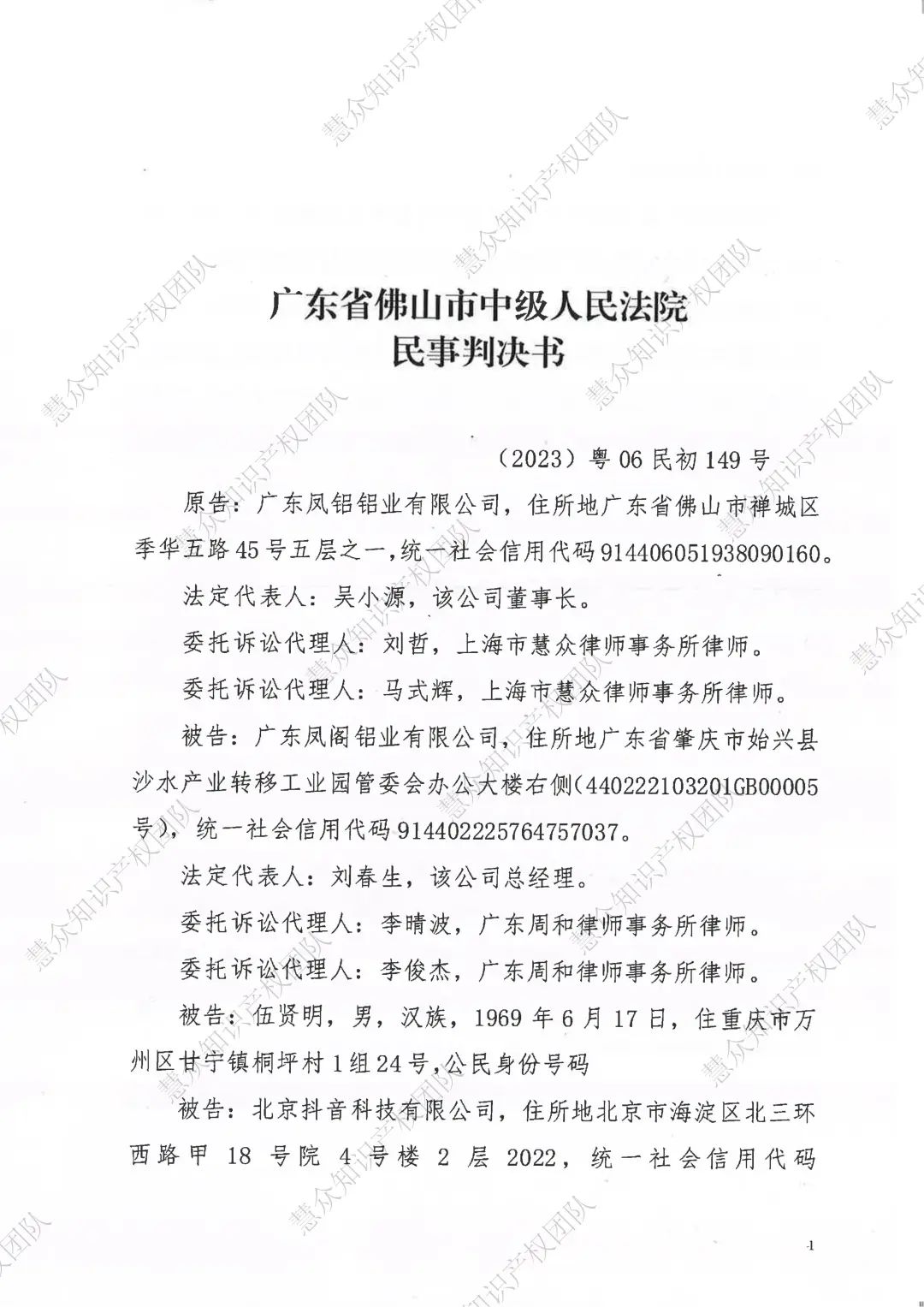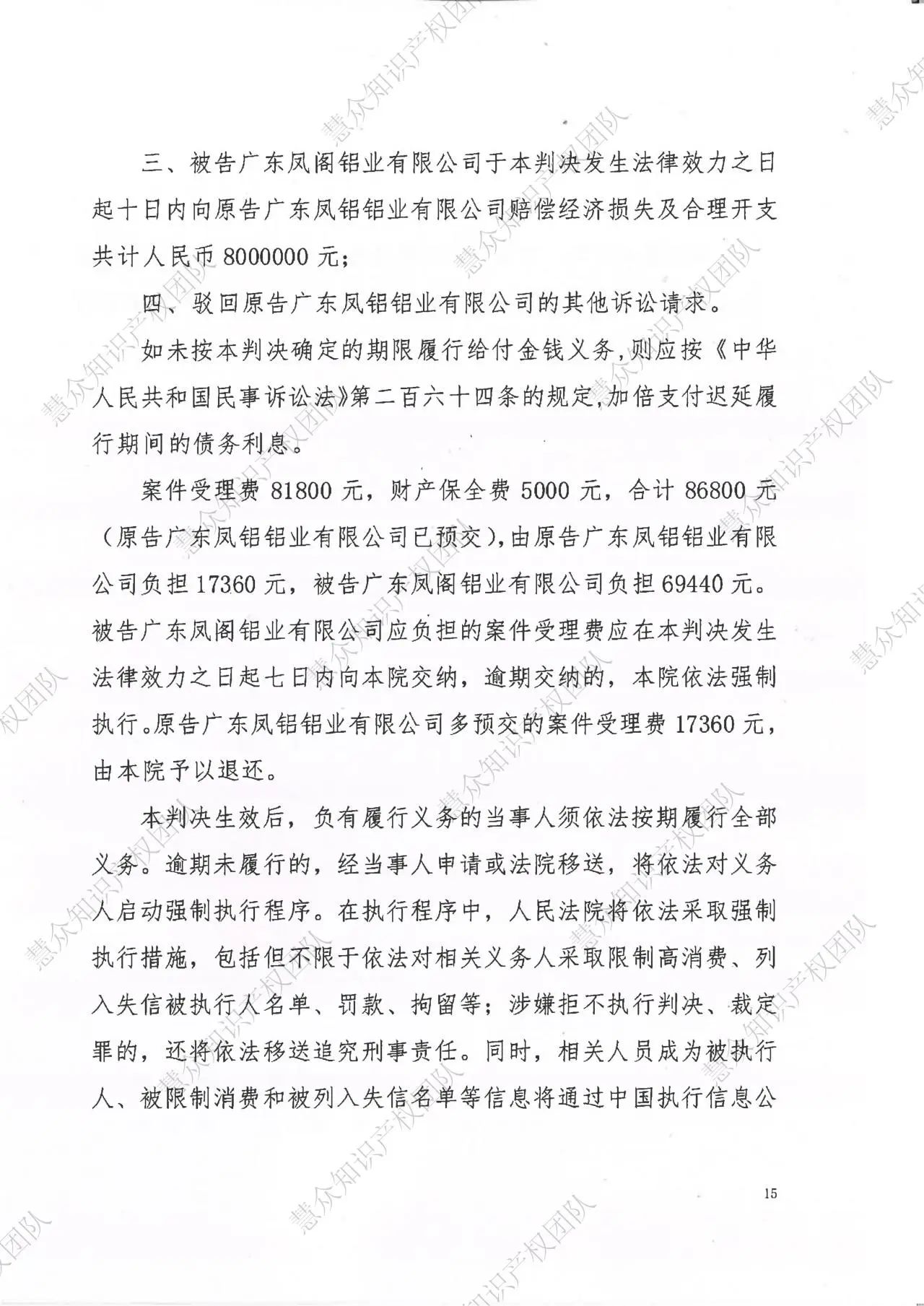 晋中判赔800万!辉知队代理“凤铝”商标维权案胜诉